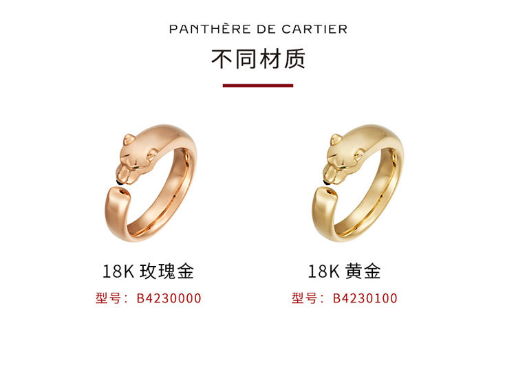 Panthère de Cartier卡地亚猎豹戒指,750‰玫瑰金,缟玛瑙,镶嵌2颗莎弗莱石。图案宽度:7.31 毫米(适用尺寸:52)。根据您所订购作品的尺寸不同,宝石克拉重量、宝石数量和作品大小可能存在差异。如需了解详情,请联系卡地亚服务大使。