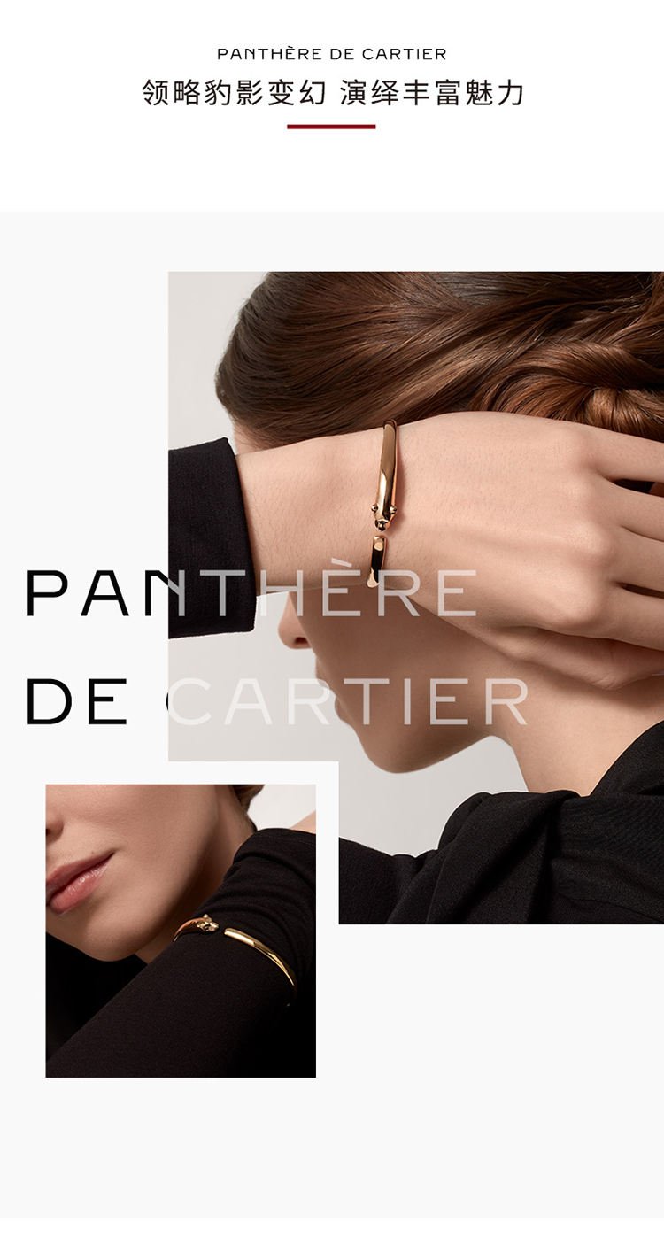 Panthère de Cartier卡地亚猎豹手镯,750/1000黄金,缟玛瑙,镶嵌2颗沙弗莱石(适用尺寸:17)。根据您所订购作品的尺寸不同,宝石克拉重量、宝石数量和作品大小可能存在差异。如需了解详情,请联系卡地亚服务大使。