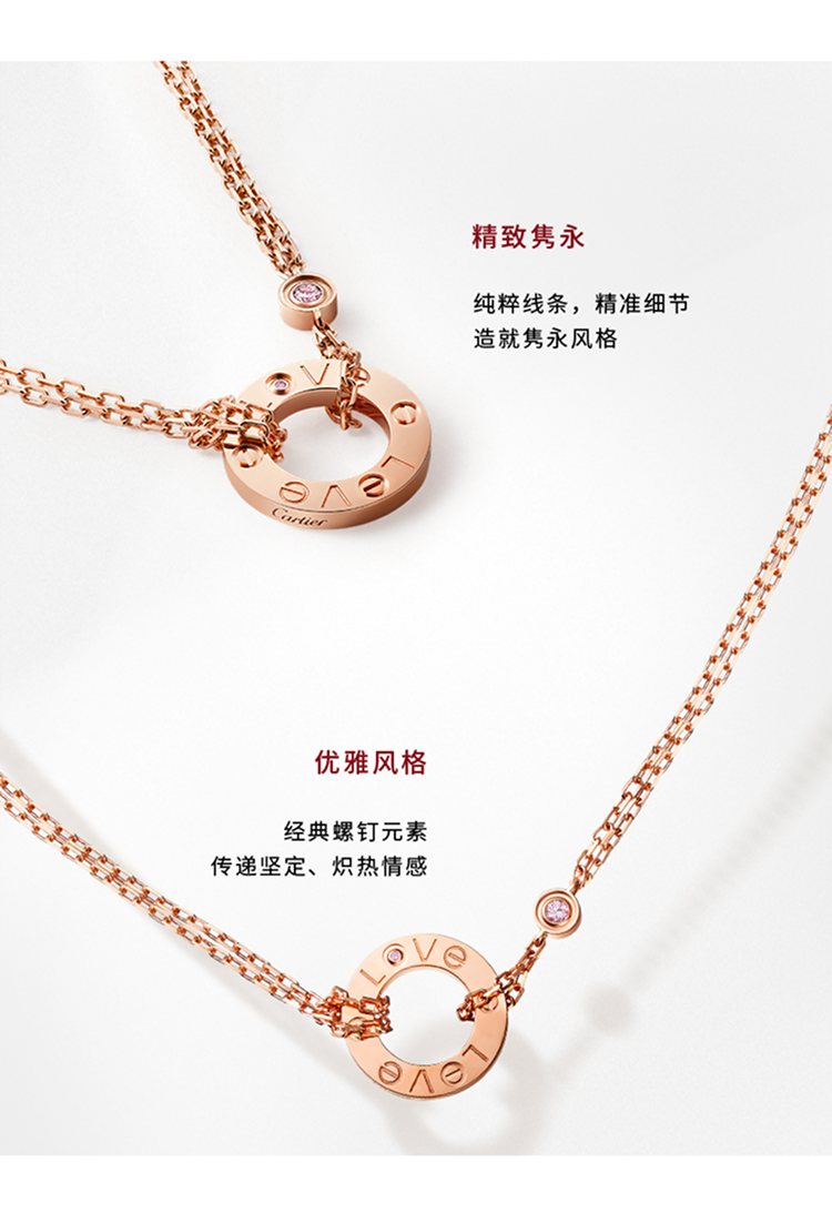 LOVE吊坠项链,镶嵌2颗钻石 18K玫瑰金