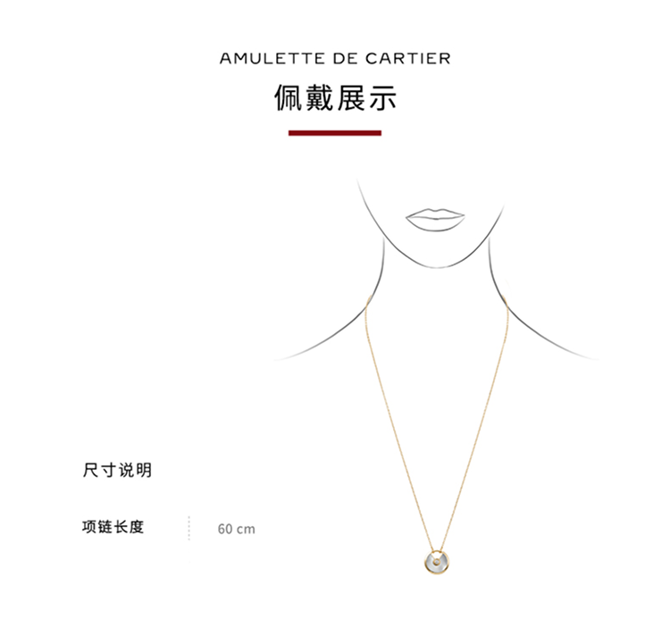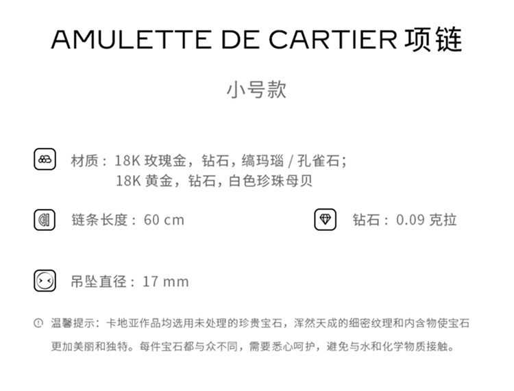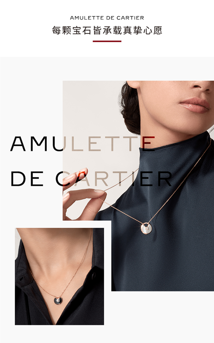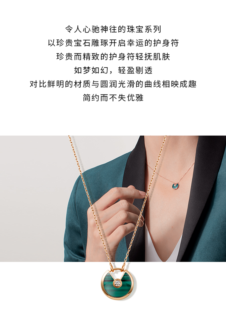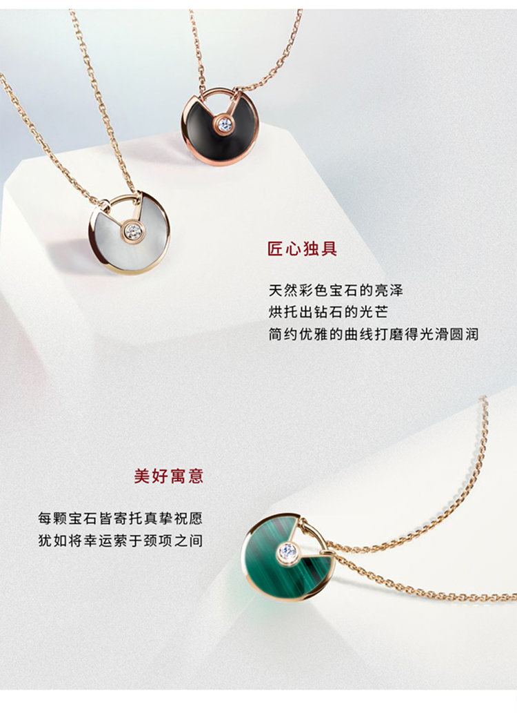 Amulette de Cartier项链,小号款,750‰玫瑰金,镶嵌一颗重0.09克拉圆形明亮式切割钻石,缟玛瑙。