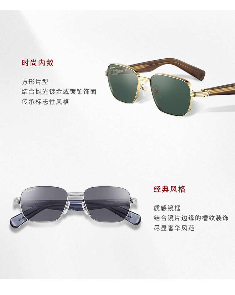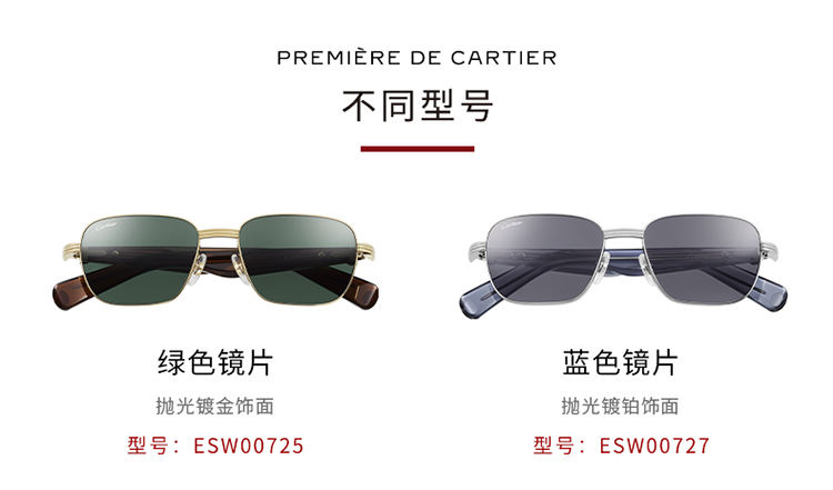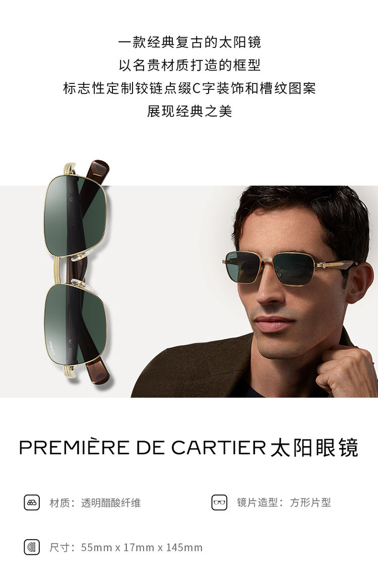 Première de Cartier太阳眼镜,透明蓝色醋酸纤维和抛光镀铂饰面金属,方形片型,蓝色镜片。尺寸:55毫米 x 17毫米 x 145毫米。