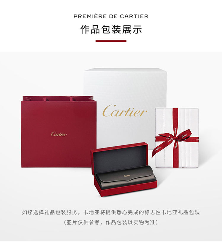 Première de Cartier太阳眼镜,白色醋酸纤维,镜腿抛光镀金饰面金属细节,杏仁形片型,紫色镜片,带金色镜面效果。尺寸:48毫米 x 21毫米 x 145毫米。