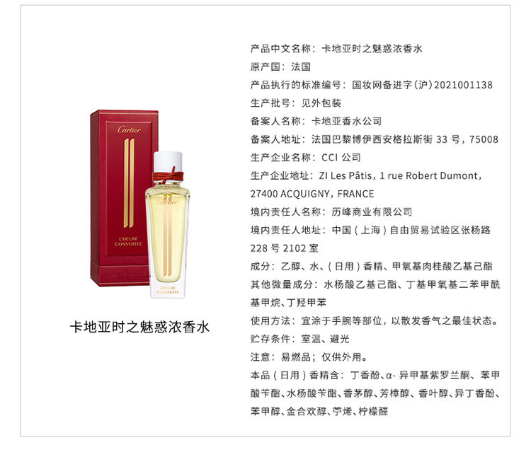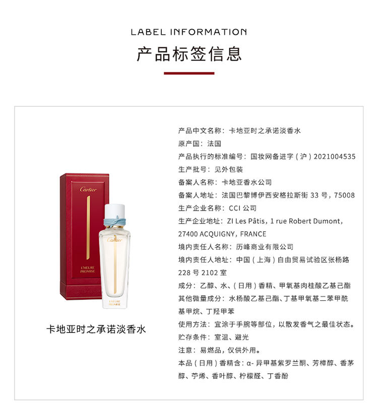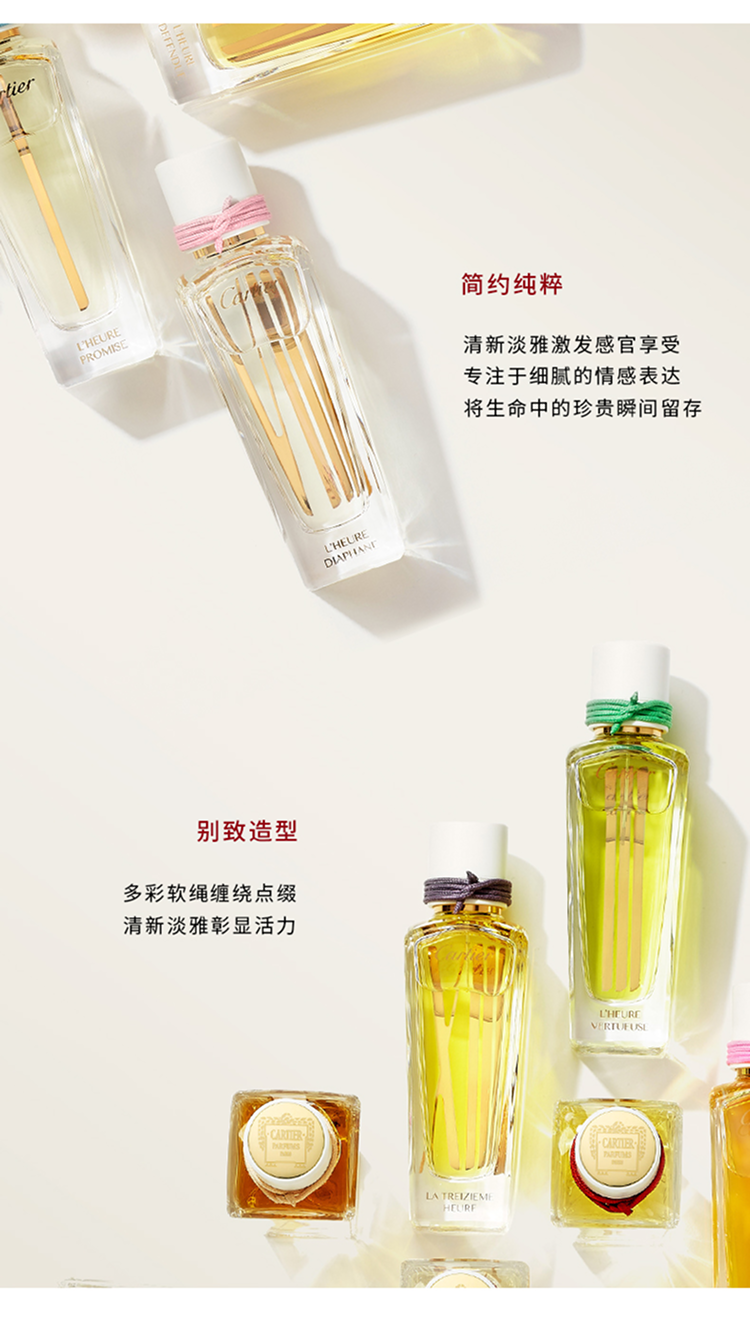 流连、驻守瞬间时光:卡地亚L'HEURE PROMISE时之承诺香水。一缕馥郁的檀香气息萦绕枕间,伴您安然入眠,静享整夜好梦。在外面,我感觉如同飘逸的麝香香调一般,呼应自我内心,我的命运展现眼前,渴望踏上冒险之旅。