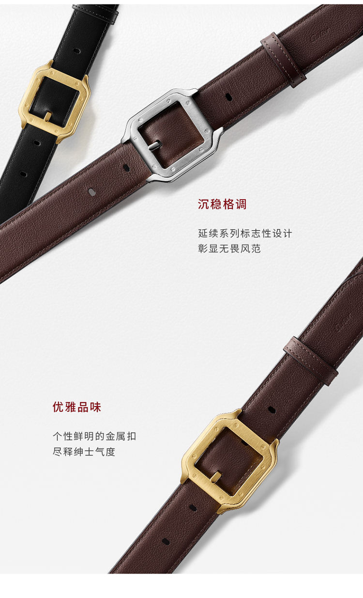 镀钯饰面针扣式皮带,Cartier标志。黑色与棕色牛皮双面皮带,浮雕“Cartier”标志。尺寸:宽30毫米 x 长1230毫米。可调节。