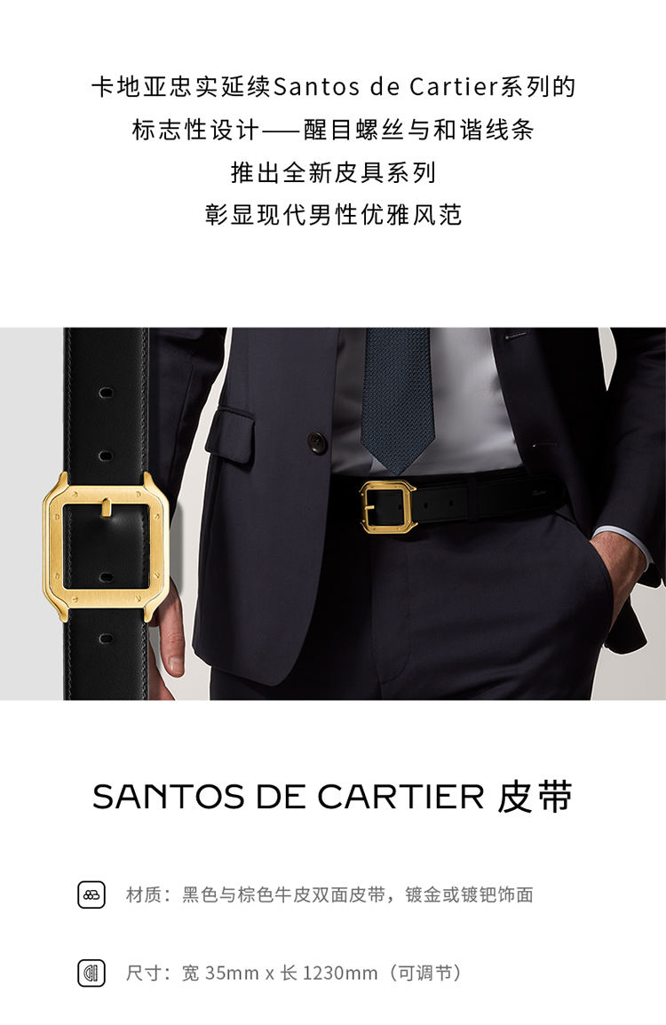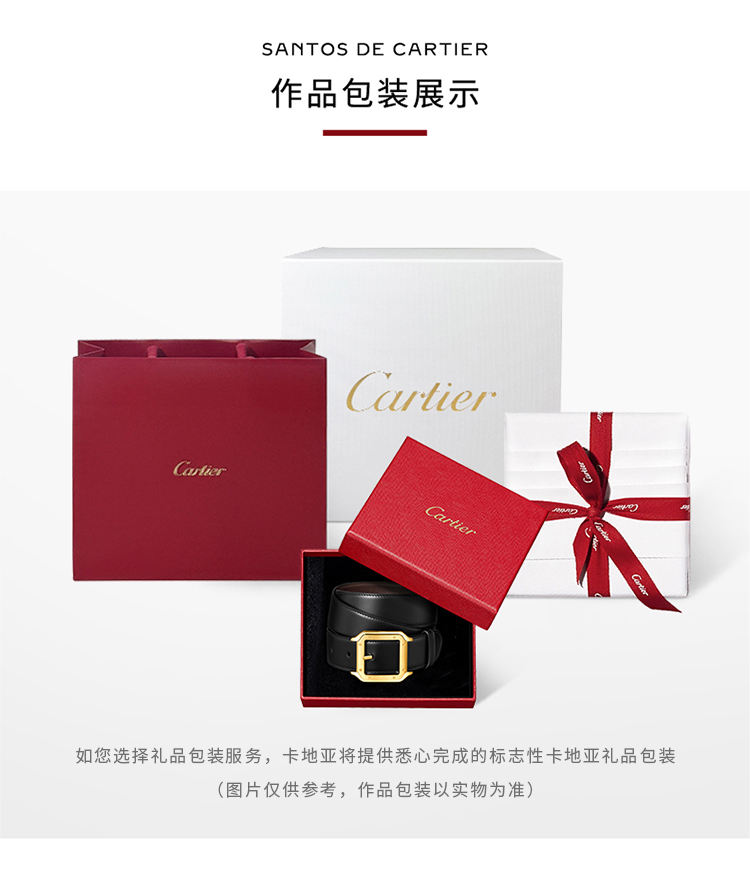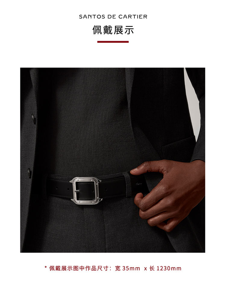 镀钯饰面针扣式皮带,Cartier标志。黑色与棕色牛皮双面皮带,浮雕“Cartier”标志。尺寸:宽35毫米 x 长1,230毫米。可调节