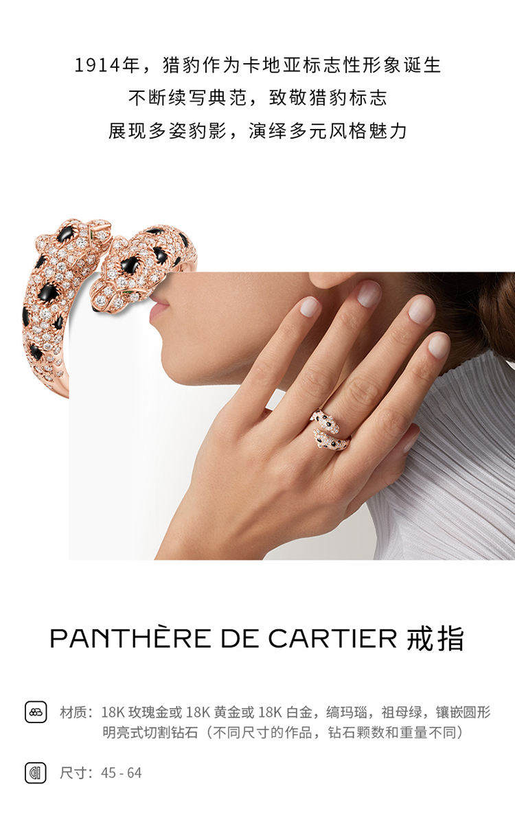 Panthère de Cartier卡地亚猎豹戒指,750/1000白金,缟玛瑙,镶嵌2颗祖母绿和174颗圆形明亮式切割钻石,总重0.92克拉(适用尺寸:52)。根据您所订购作品的尺寸不同,宝石克拉重量、宝石数量和作品大小可能存在差异。如需了解详情,请联系卡地亚服务大使。