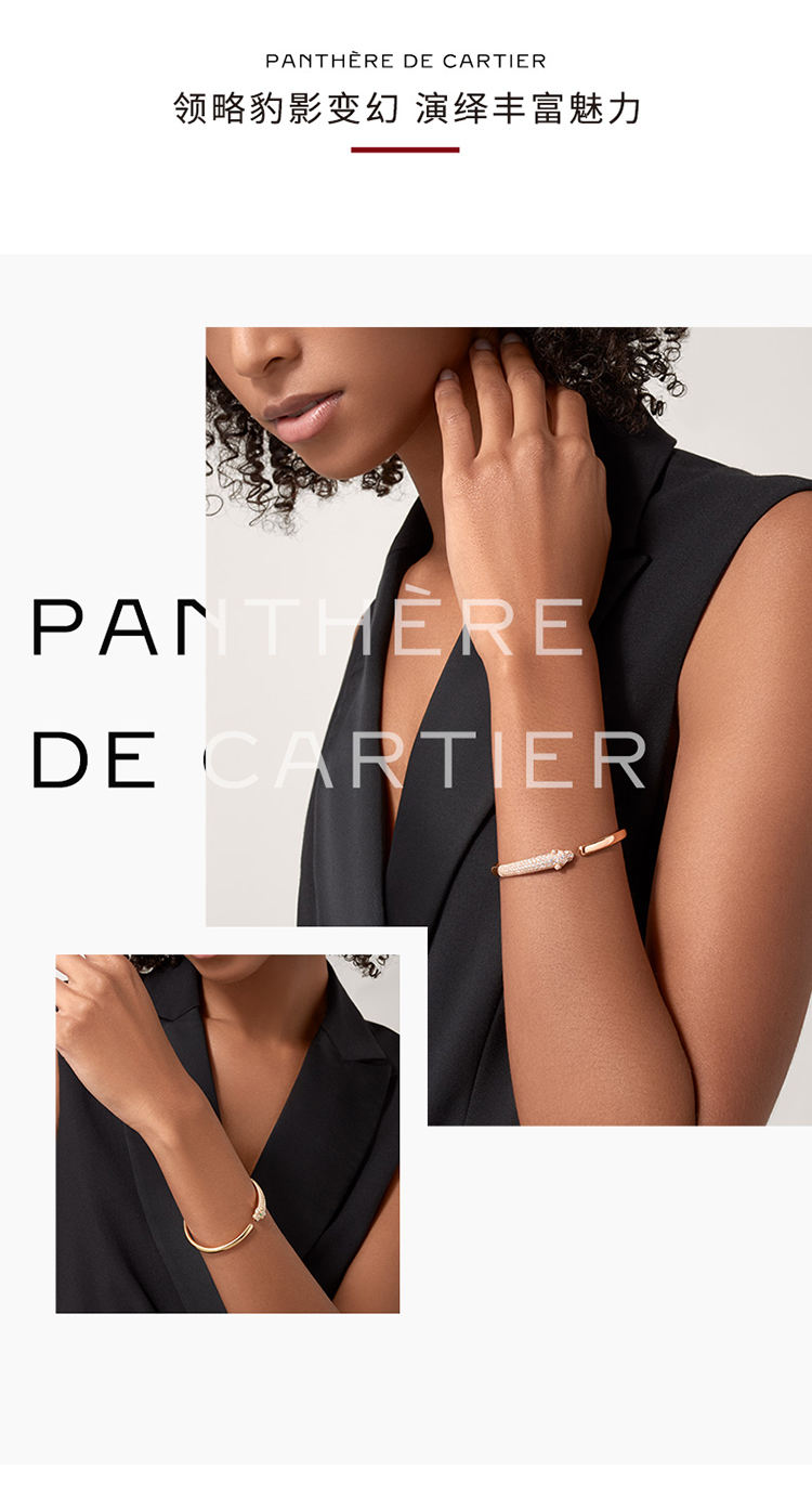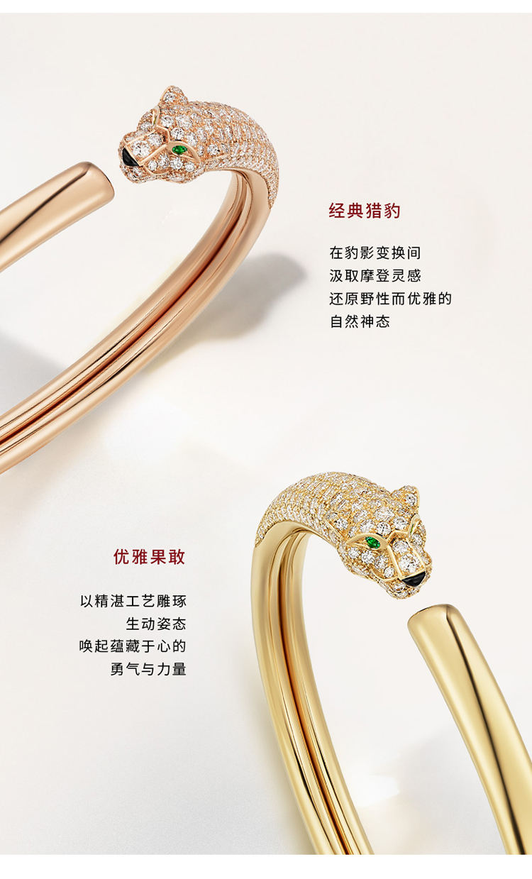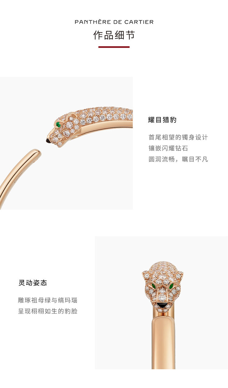 Panthère de Cartier卡地亚猎豹手镯,750/1000玫瑰金,缟玛瑙,祖母绿,圆形明亮式切割钻石。根据您所订购作品的尺寸不同,宝石克拉重量、宝石数量和作品大小可能存在差异。如需了解详情,请联系卡地亚服务大使。