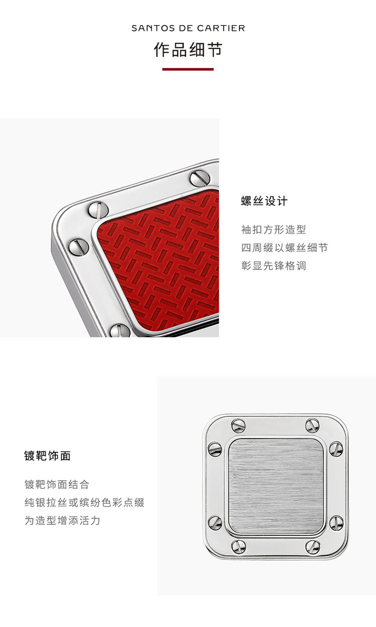 纯银袖扣,透明红漆涂层,雕刻人字纹图案,镀钯饰面