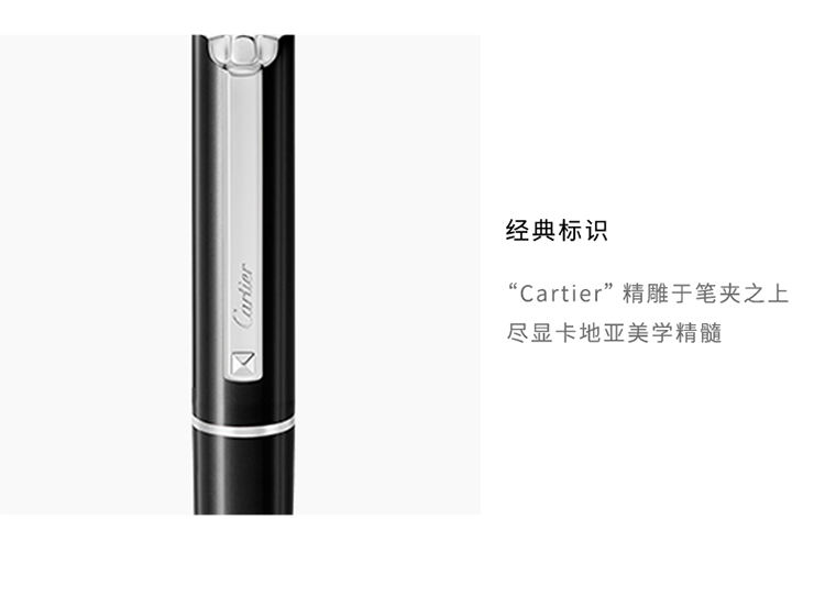 Panthère de Cartier圆珠笔,小号款。笔杆和笔帽覆以不透明黑色亮漆,笔夹饰以抛光金属豹首和巴黎饰钉图案,镀金饰面细节。 凸圆形切割毕加索大理石。 尺寸:127 x 9.7毫米。 随附一支圆珠笔笔芯,蓝色墨水,中号款。