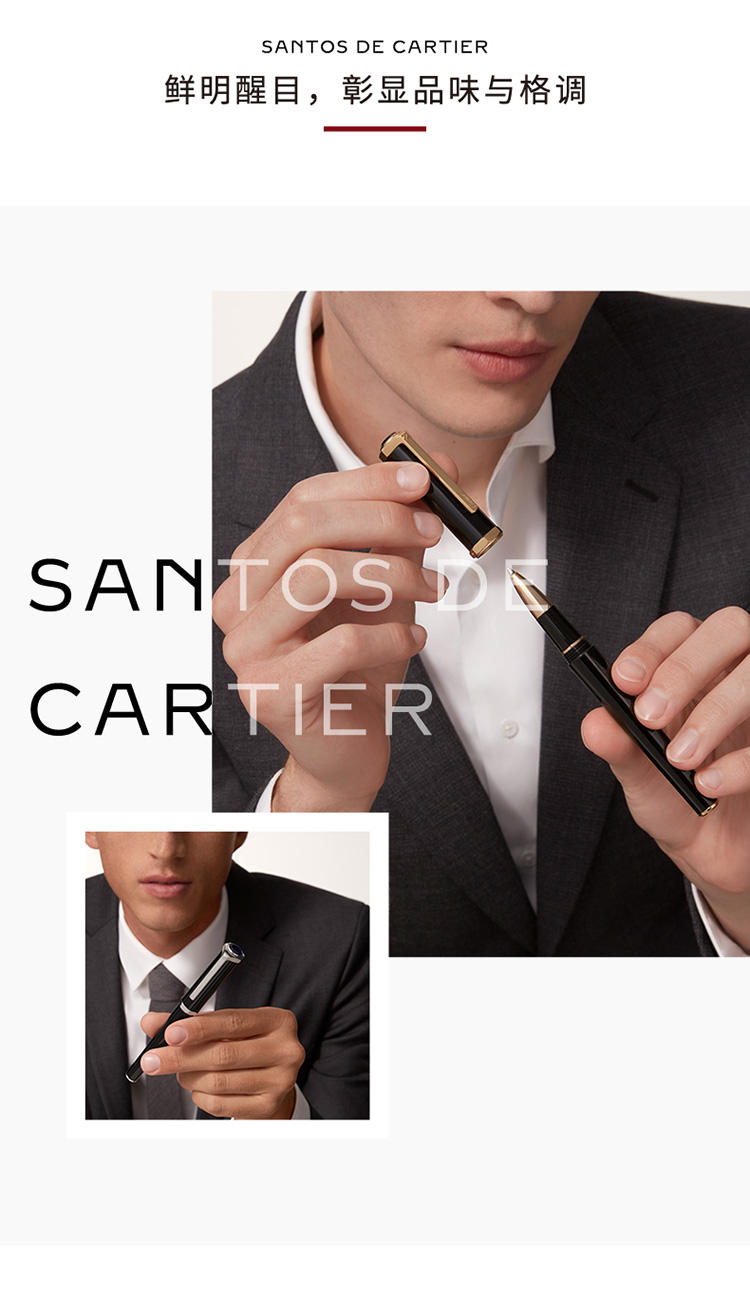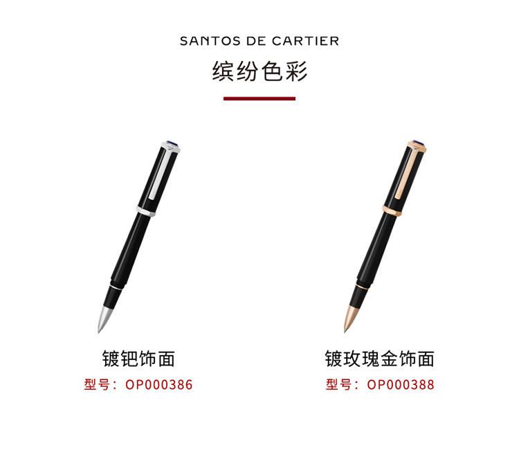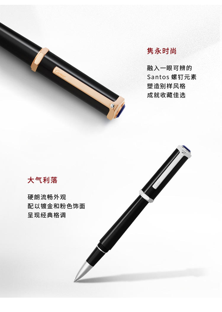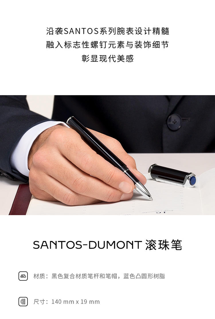 Santos-Dumont滚珠笔,黑色复合材质笔杆和笔帽,镀钯饰面细节,蓝色凸圆形树脂。