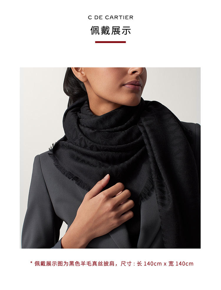 C de Cartier白色羊毛真丝披肩。尺寸:140 x 140厘米。