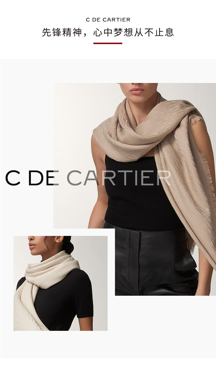Panthère de Cartier披肩,米色真丝和羊绒。尺寸:140 x 140厘米。