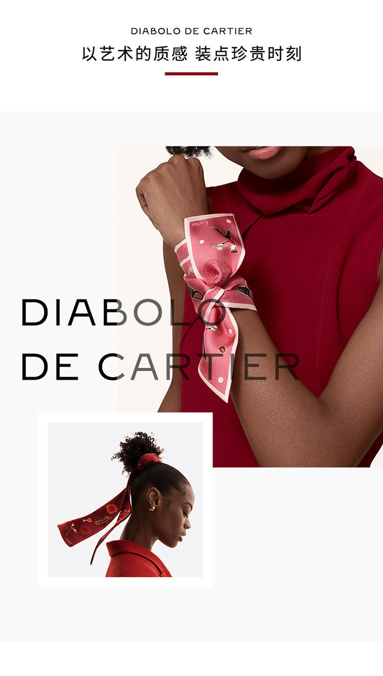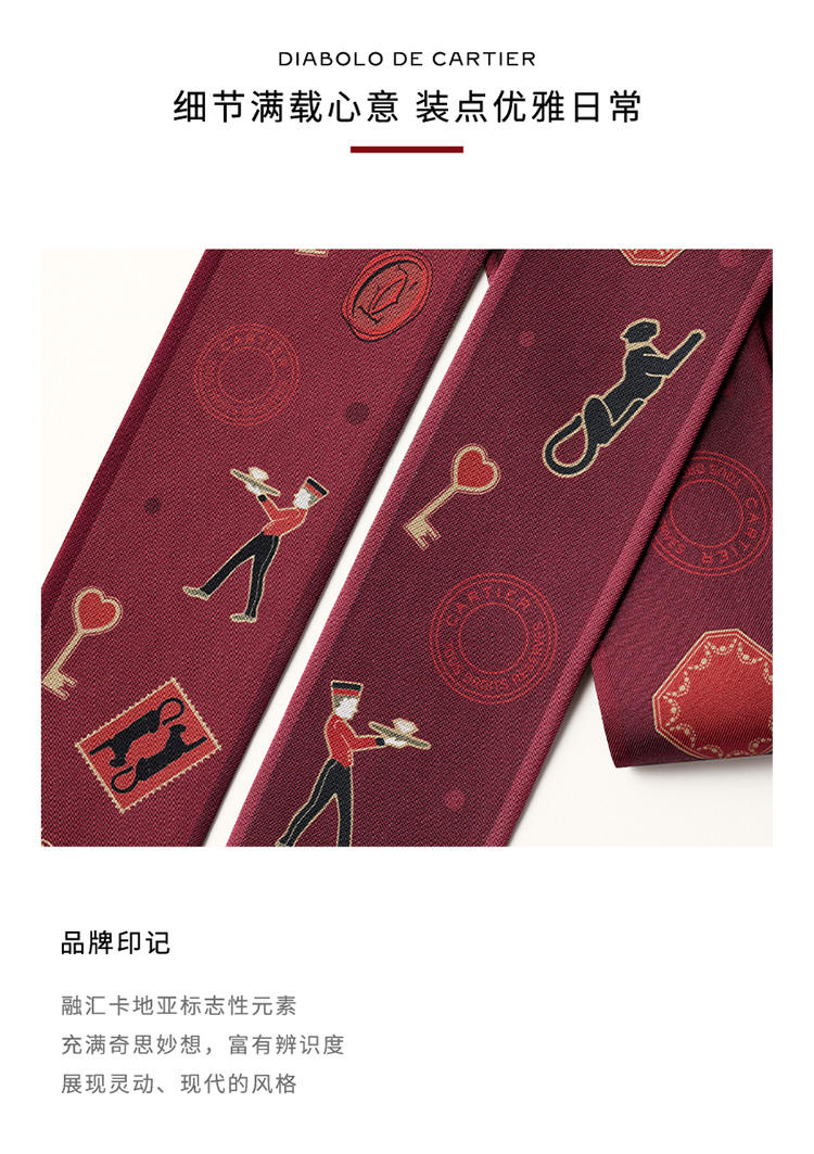 Diabolo de Cartier系列Bandeau细丝巾,葡萄红色和酒红色斜纹真丝。尺寸:105厘米 x 6厘米。