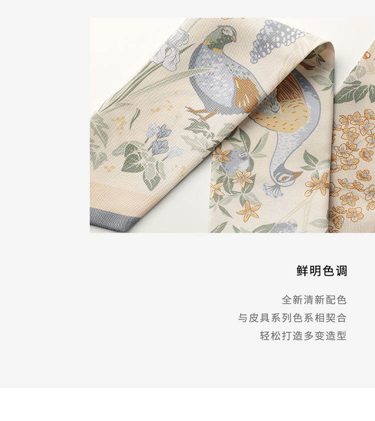 Blooming Panthère图案细丝巾,深空蓝色斜纹真丝。尺寸:105厘米 x 6厘米。