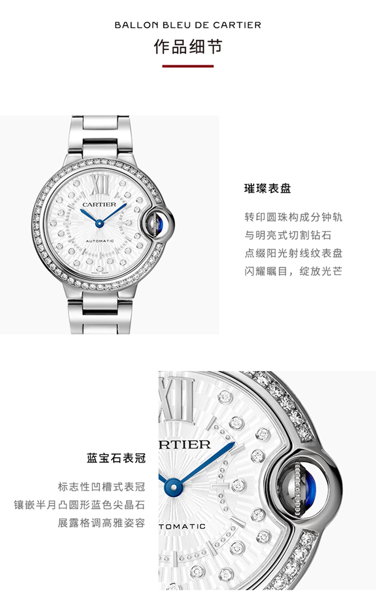 Ballon Bleu de Cartier腕表,28毫米表款,石英机芯。