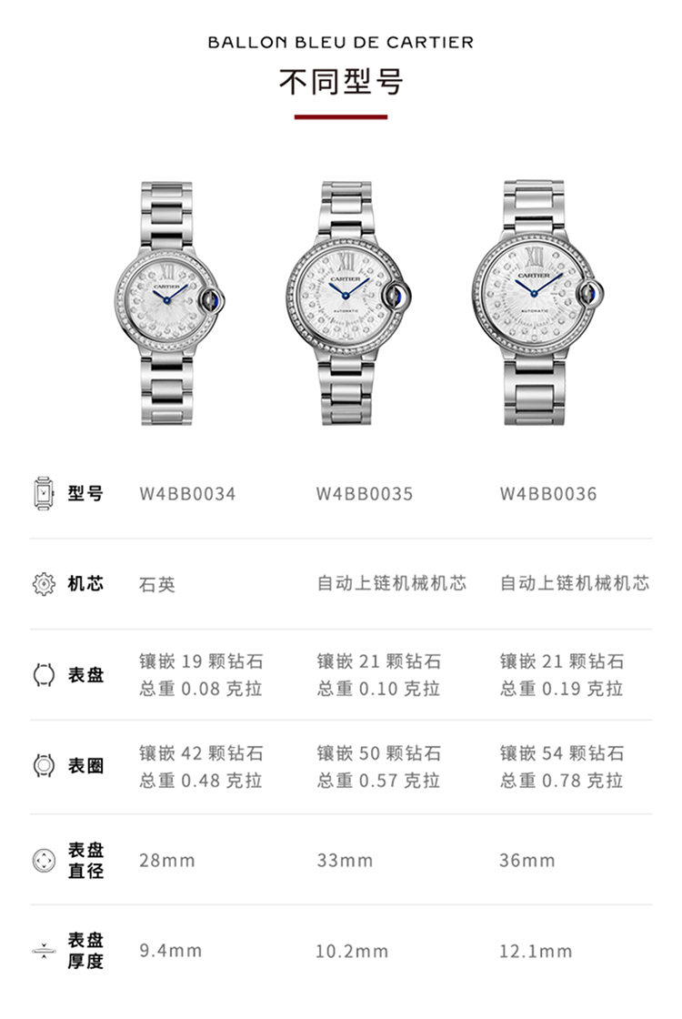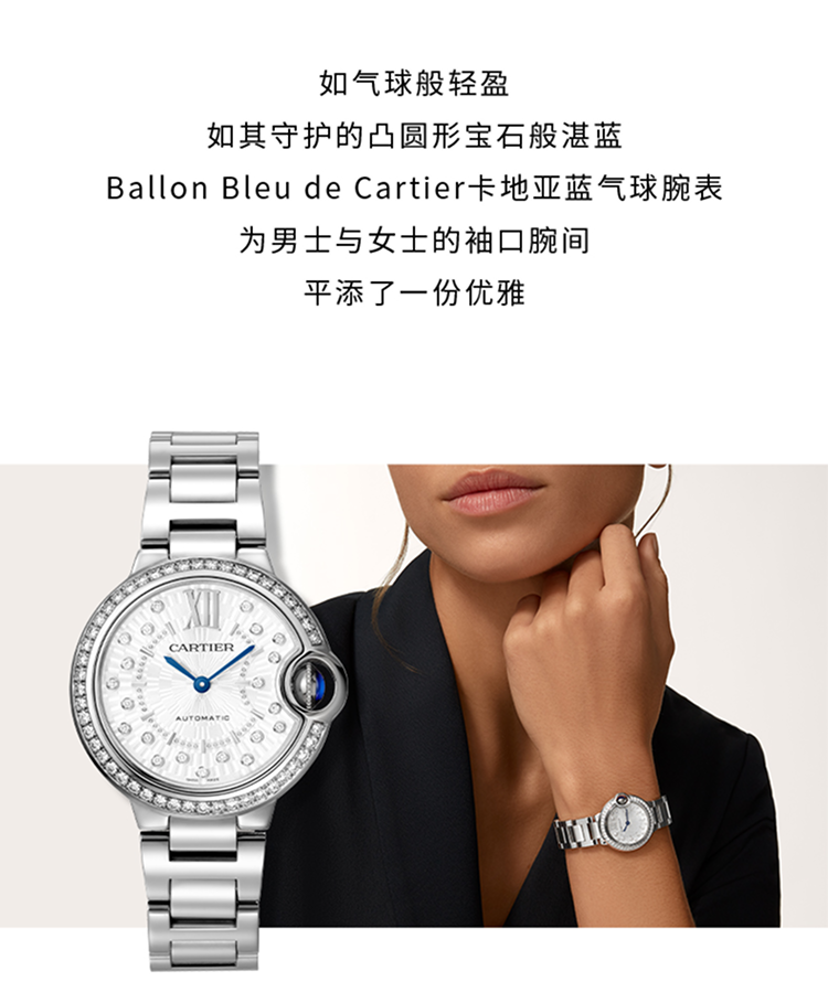 Ballon Bleu de Cartier腕表,33毫米表款,自动上链机械机芯。