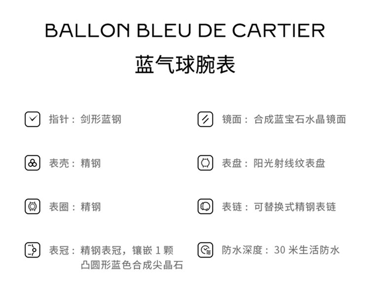 Ballon Bleu de Cartier卡地亚蓝气球腕表,36毫米表款,自动上链机械机芯。