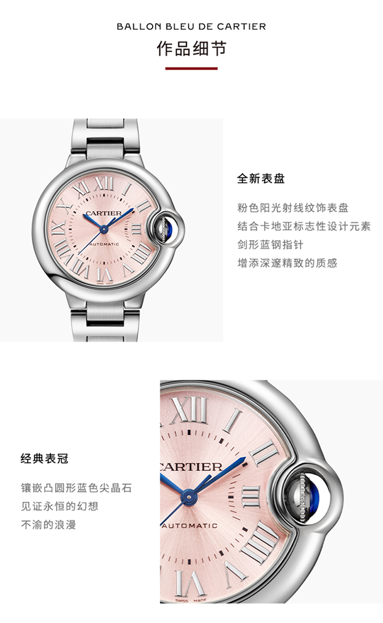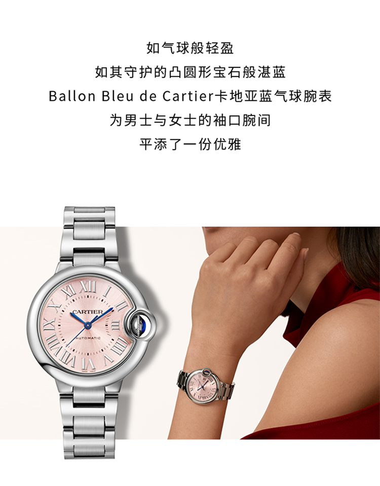 Ballon Bleu de Cartier卡地亚蓝气球腕表,33毫米表款,自动上链机械机芯。